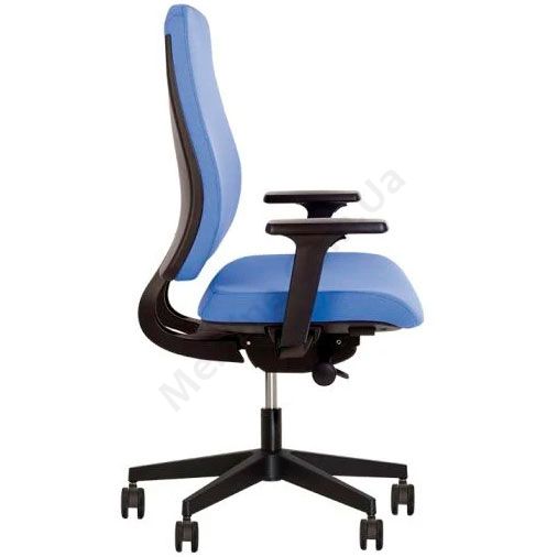 Операторське крісло з з вільним гойданням, регульованими підлокітниками, на пластиковій основі.