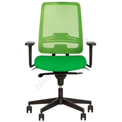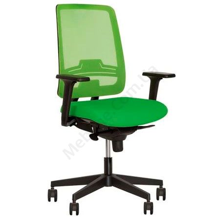 Операторське крісло з вільним гойданням, регульованими підлокітниками з м’якими накладками, сітчастою спинкою, на пластиковій основі.