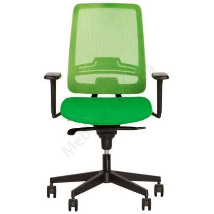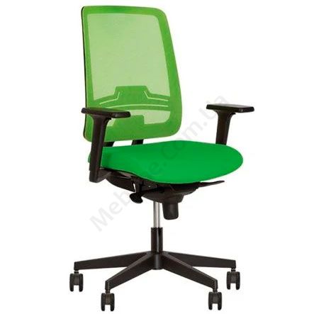 Операторське крісло з з вільним гойданням, регульованими підлокітниками, сітчастою спинкою, на пластиковій основі.