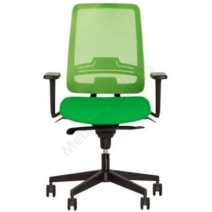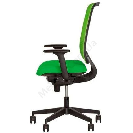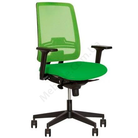 Операторське крісло з з вільним гойданням, регульованими підлокітниками з м’якими накладками, сітчастою спинкою, на пластиковій основі.