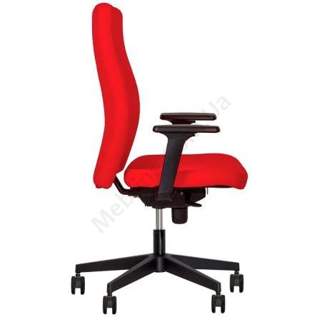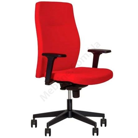 Комп’ютерне крісло з вільним гойданням, регульованими підлокітниками, на пластиковій основі.