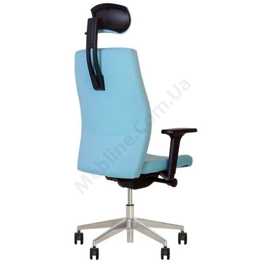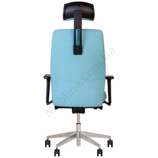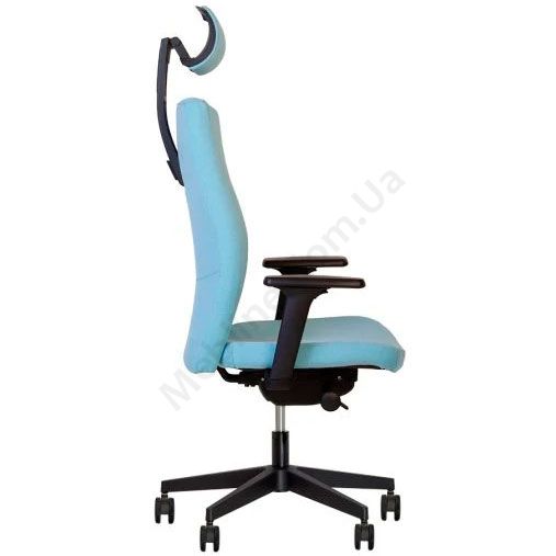 Комп’ютерне крісло з вільним гойданням, регульованими підлокітниками, на металевій основі.
