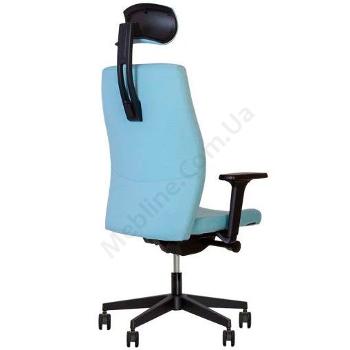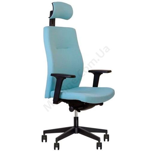 Комп’ютерне крісло з вільним гойданням, регульованими підлокітниками, на пластиковій основі.
