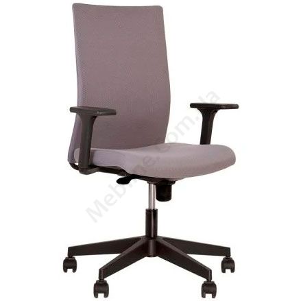 Операторське крісло з сітчастою спинкою і регульованою поперековою підтримкою, регульованими підлокітниками, фіксацією у 5 положеннях, на чорній пластиковій основі.