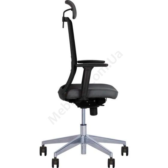 Комп’ютерне крісло з сітчастою спинкою, регульованими підлокітниками, фіксацією у 5 положеннях, на металевій алюмінієвій основі.
