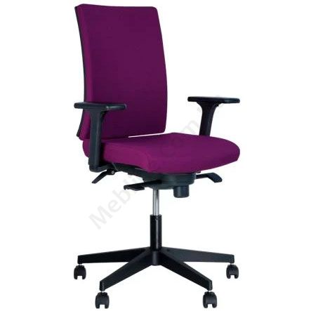 Комп’ютерне поворотне крісло зі спинкою з віконцями, регульованими підлокітниками за висотою, по ширині та уздовж, фіксацією у 4 положеннях, на чорній пластиковій основі.