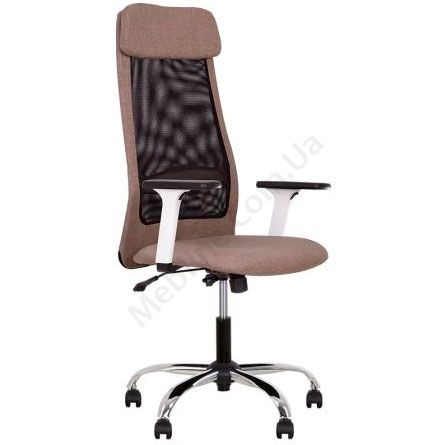Комп’ютерне крісло з дихаючою спинкою, регульованими підлокітниками, фіксацією в будь-якому положенні, на хромованій основі.