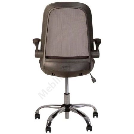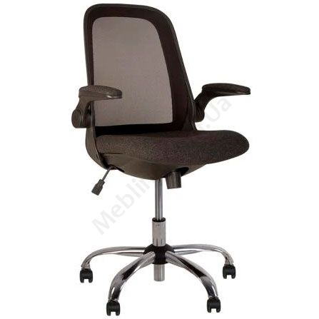 Операторське крісло з дихаючою спинкою, відкидними підлокітниками, фіксацією у вертикальному положенні, на хромованій основі.