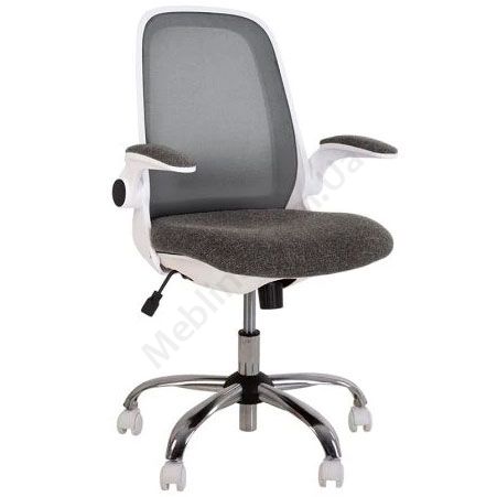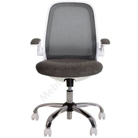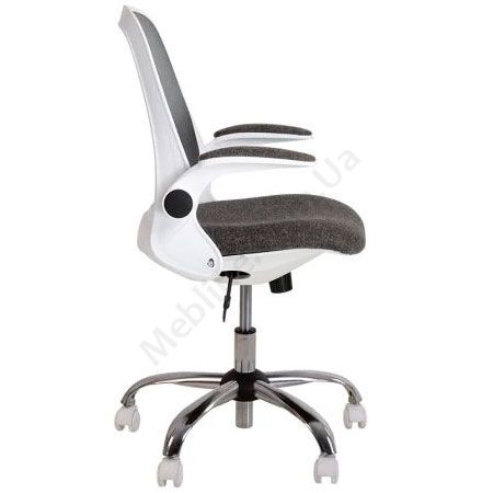 Операторське крісло з дихаючою спинкою, відкидними підлокітниками, фіксацією у вертикальному положенні, на хромованій основі.