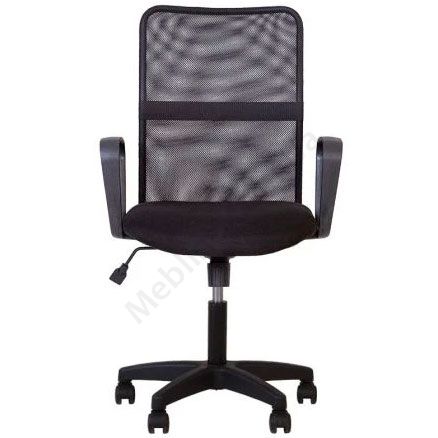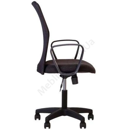 Операторське крісло з дихаючою спинкою, нерегульованими підлокітниками, фіксацією у вертикальному положенні, на пластиковій основі.