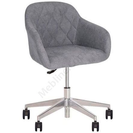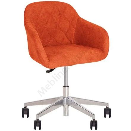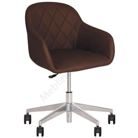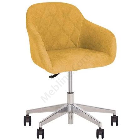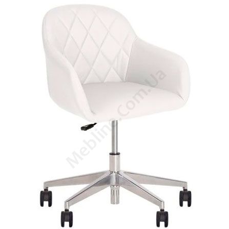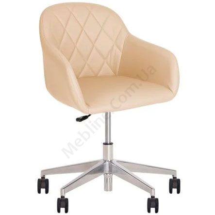 Комп’ютерне крісло з м’якими підлокітниками, м’яким сидінням та невисокою спинкою, на алюмінієвій основі.