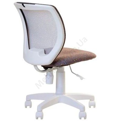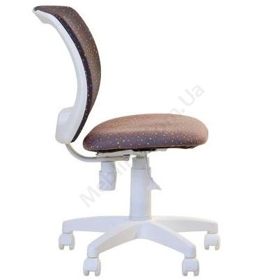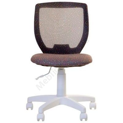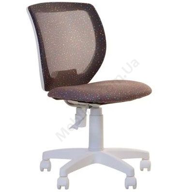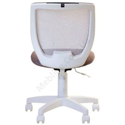 Дитяче поворотне крісло з дихаючою спинкою, без підлокітників, функцією постійного гойдання, на білій пластиковій основі.