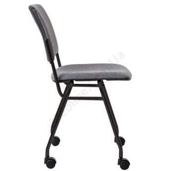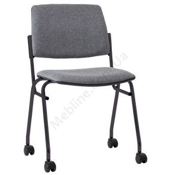 Стілець на роликах для відвідувачів та конференцій без підлокітників на рамі чорного кольору.