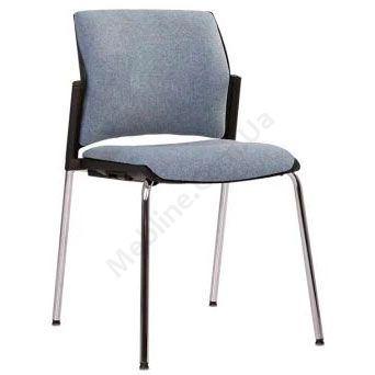 Стілець для відвідувачів та конференцій без підлокітників на хромованій рамі з чорними пластиковими елементами.