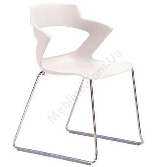 Пластиковий білий стілець для відвідувачів та конференцій без підлокітників на хромованій рамі.