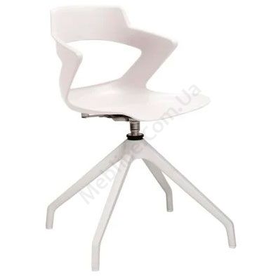 Пластиковий білий стілець для відвідувачів та конференцій без підлокітників на металевій білій рамі.
