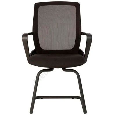 Офісний стілець з дихаючою спинкою на чорному металевому каркасі.