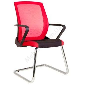 Офісний стілець з дихаючою спинкою на хромованому каркасі.