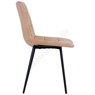 Кухонний стілець з м’якою оббивкою, на чорних металевих ніжках.