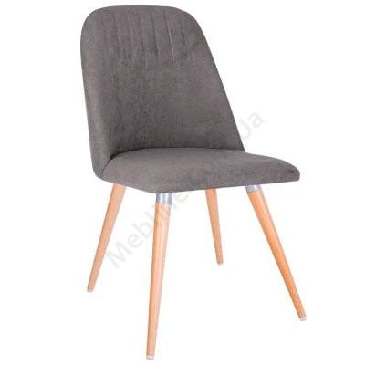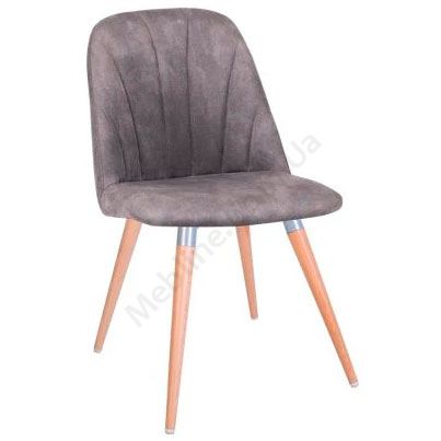 М’який обідній стілець на дерев’яних ніжках з алюмінієвими кріпленнями.
