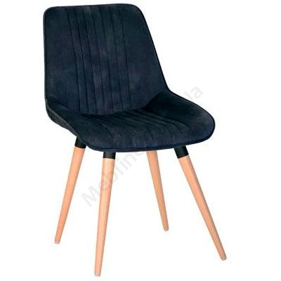 М’який обідній стілець на дерев’яних ніжках з чорними металевими кріпленнями.