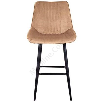 Барний стілець з м’якою оббивкою на чорних металевих ніжках.