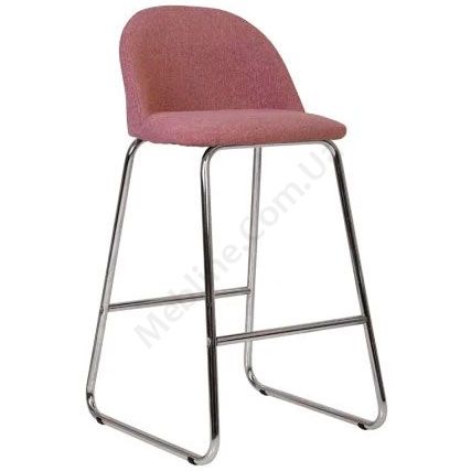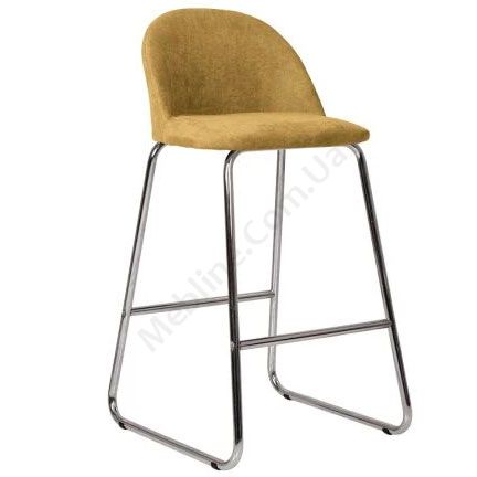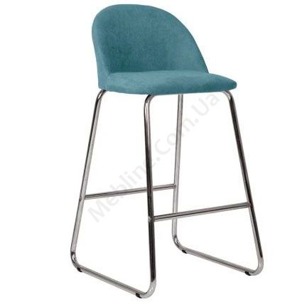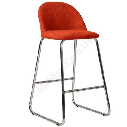 Барний стілець з трапецієподібною хромованою рамою та м’якою спинкою.