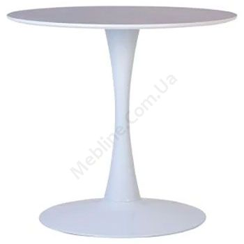 Круглий кухонний стіл зі стільницею з МДФ на металевій основі.