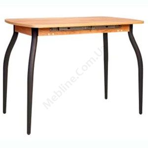 Розкладний обідній стіл на металевих вигнутих ніжках чорного кольору.