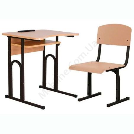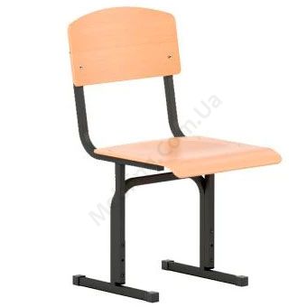 Регульований за висотою учнівський стілець на алюмінієвій рамі з сидінням із букової фанери.