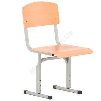 Регульований за висотою учнівський стілець на алюмінієвій рамі з сидінням із букової фанери.