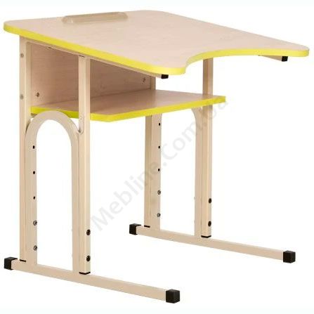 Стіл учнівський з регульованою висотою та похилою стільницею на алюмінієвій рамі.