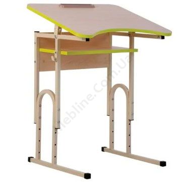 Стіл учнівський з регульованою висотою та похилою регульованою стільницею на алюмінієвій рамі.