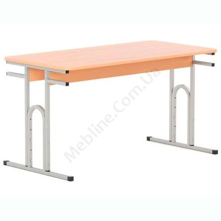 Двомісний стіл для їдальні з регулюванням висоти, закругленими кутами та підвісами для лавок на алюмінієвій рамі.