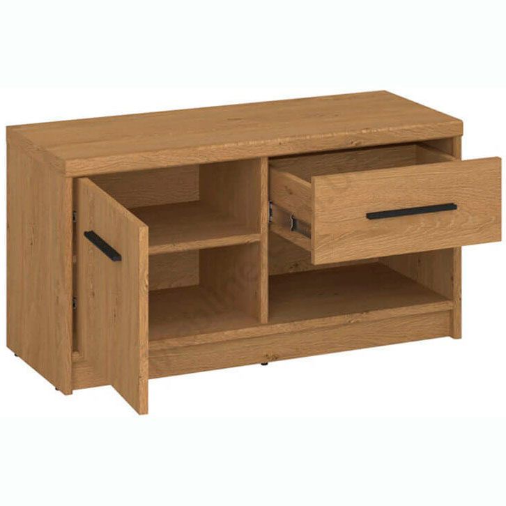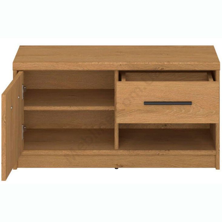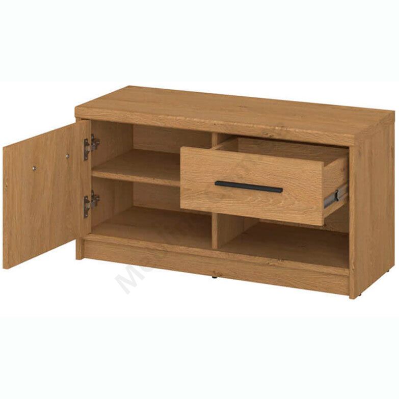 Тумба для взуття з розпашними дверцятами, шухлядою та відкритою секцією.
