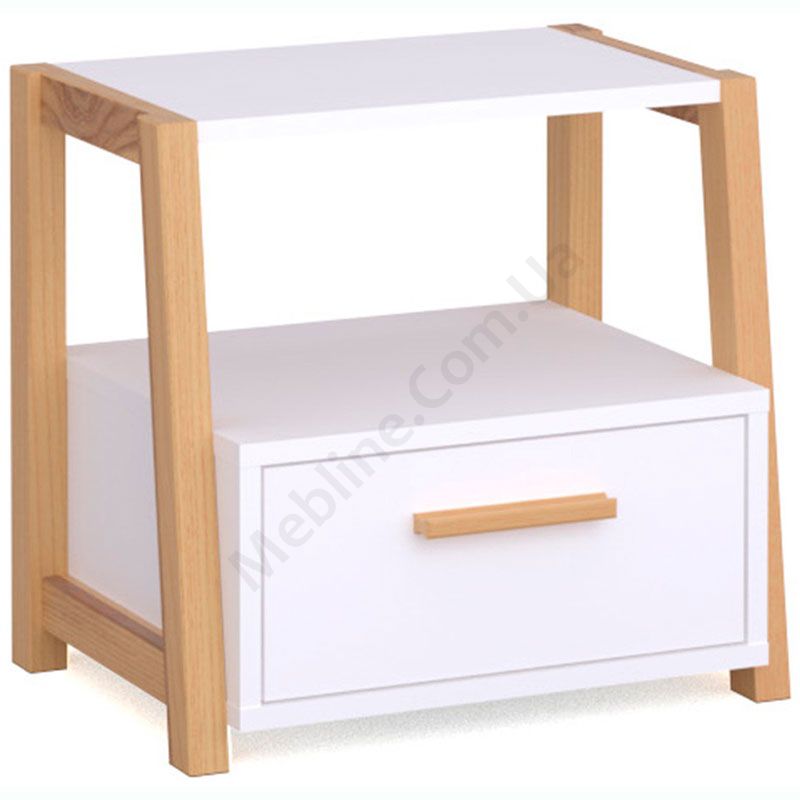 Приліжкова тумба з висувною шухлядою та відкритою полицею.