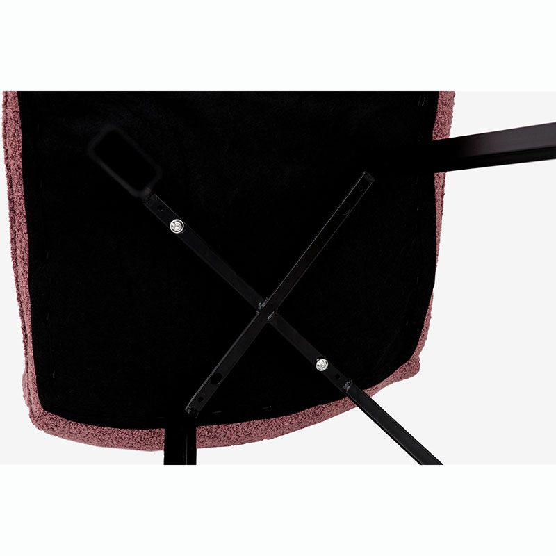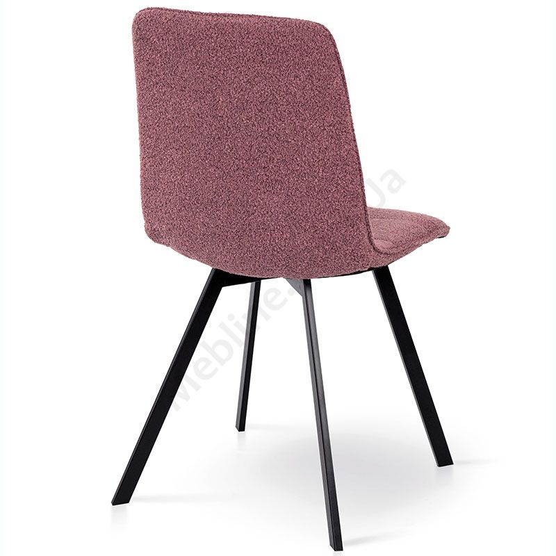 М’який стілець без підлокітників на металевих ніжках з оббивкою із букле цегляного кольору.