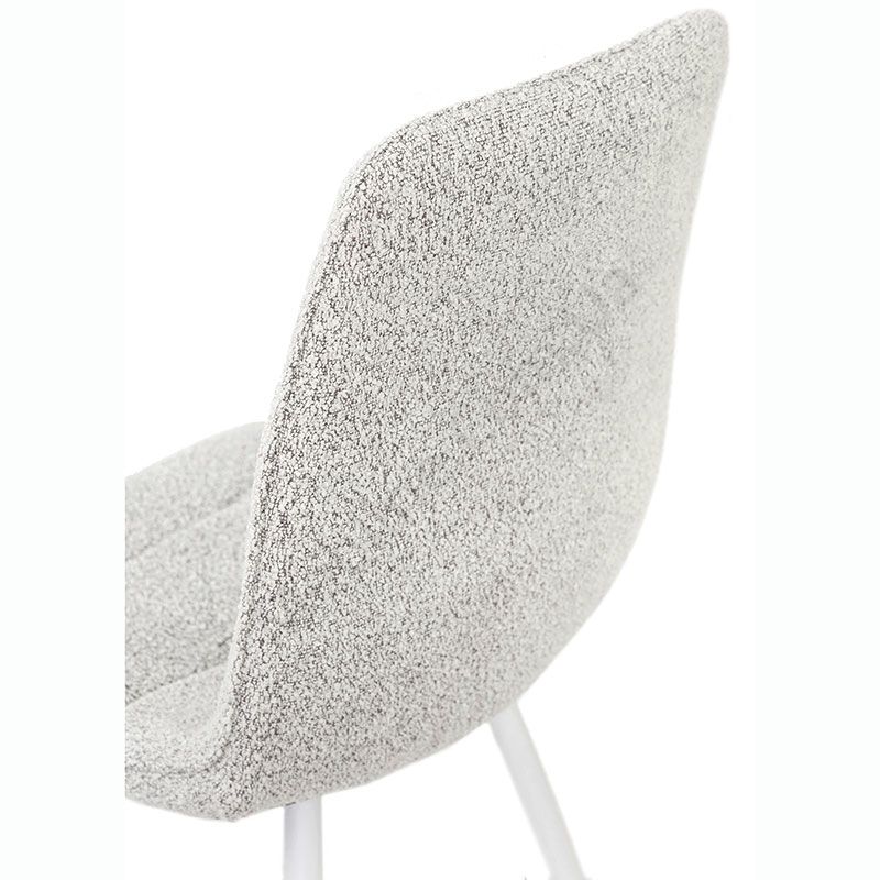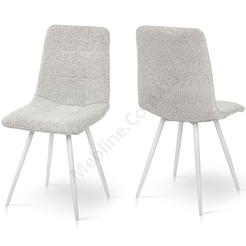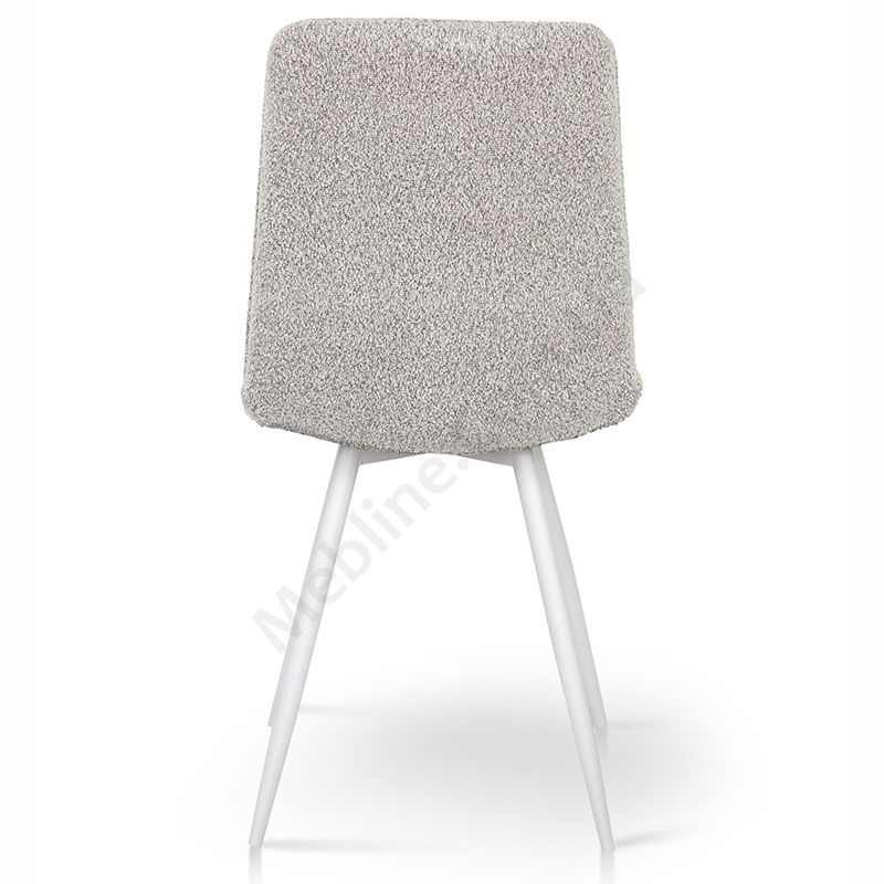М’який стілець без підлокітників на металевих ніжках з оббивкою із букле бежевого кольору.