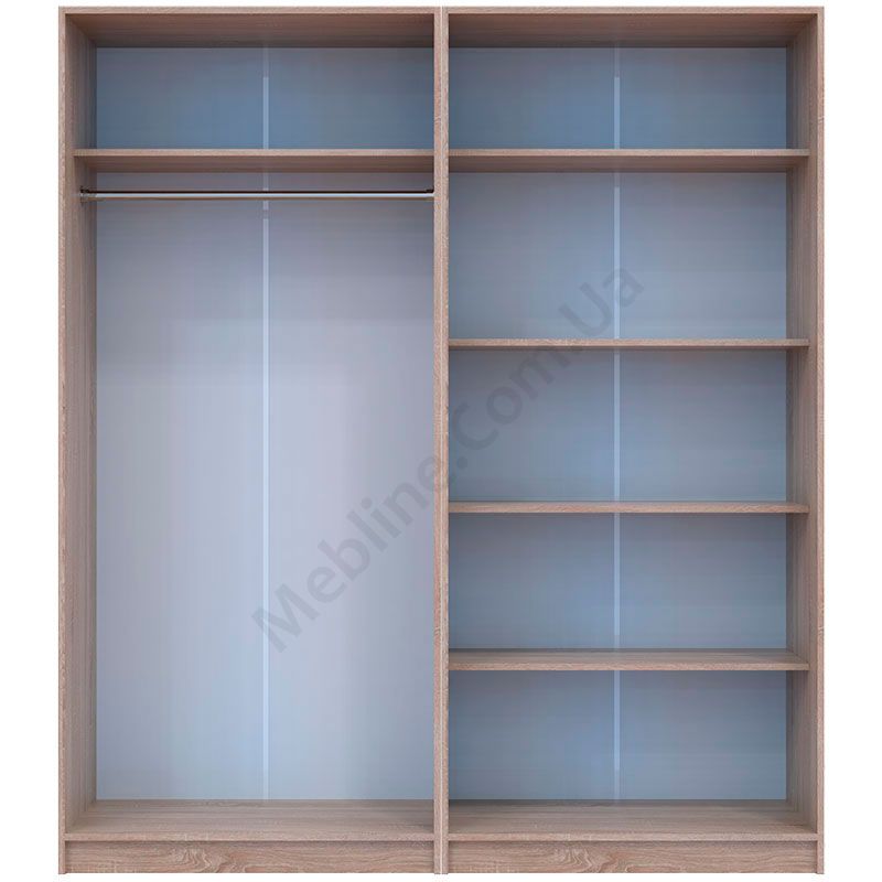 - За двома дверцятами штанга для одягу та верхня полиця.