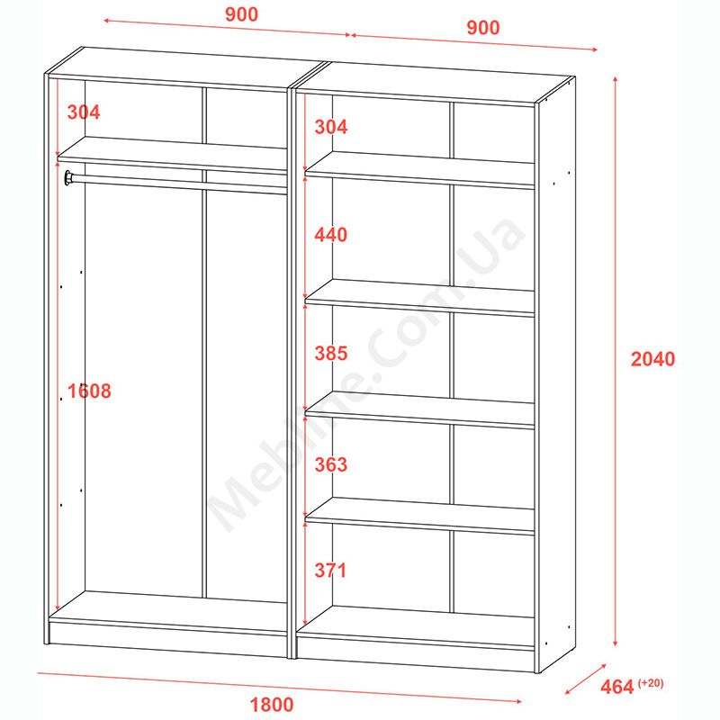 - Дві шафи з двома розпашними дверцятами кожна.