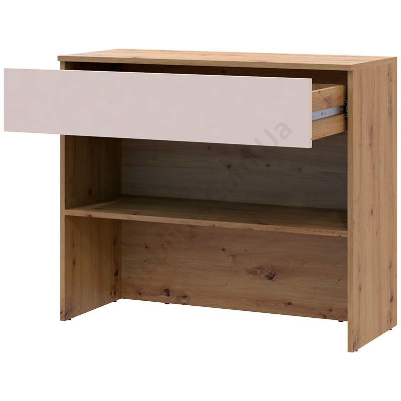 Тумба для взуття з відкритими полицями та висувною шухлядою.