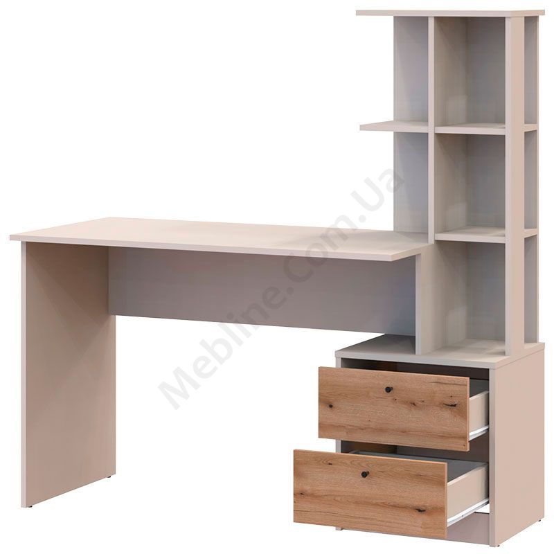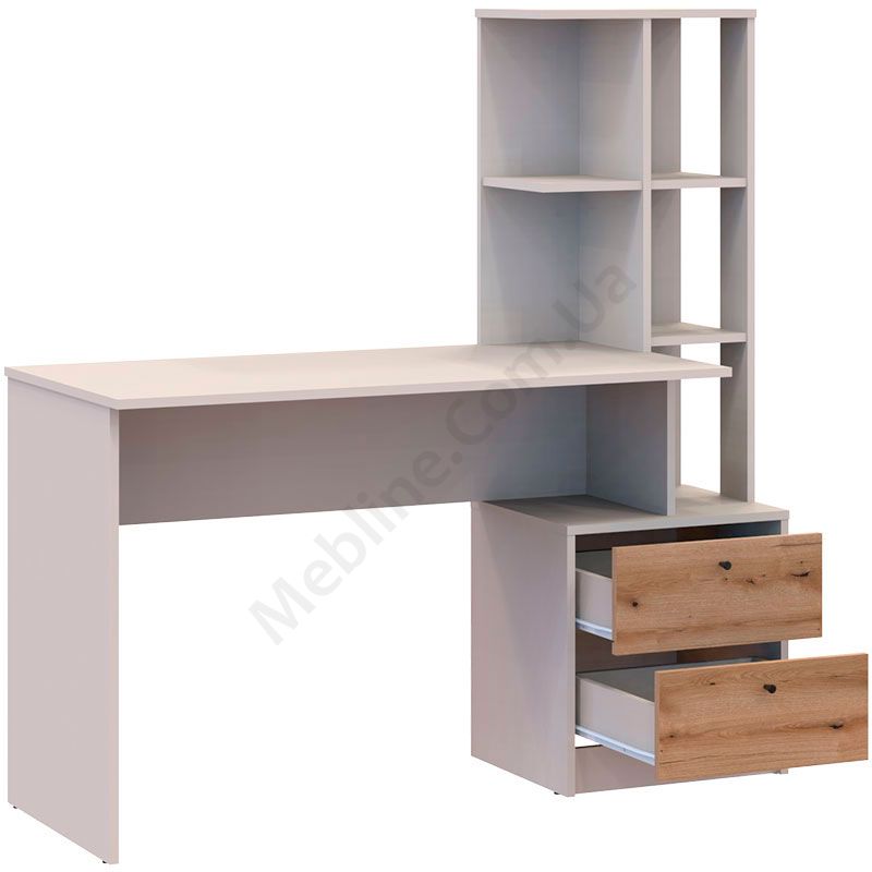 Письмовий стіл зі стелажем та висувними шухлядами.