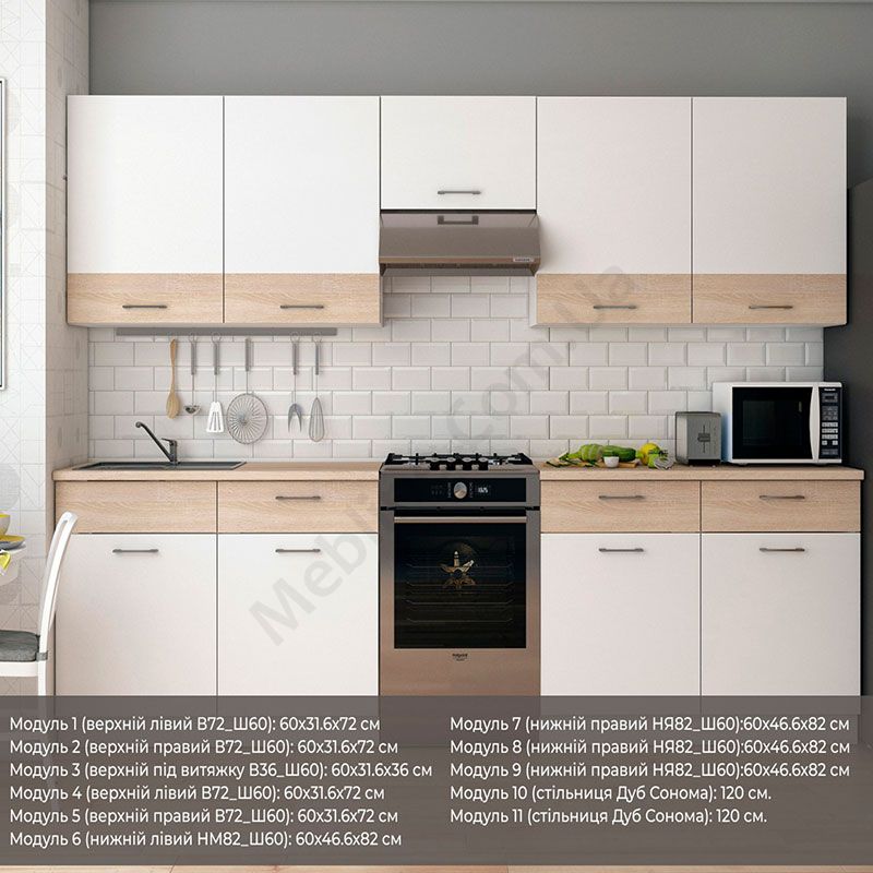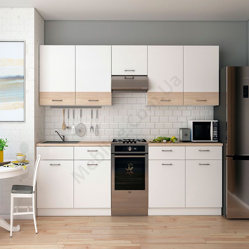 У магазині Ви можете купити Кухня Лея 3 м Білий + Дуб Сонома за доступною ціною та доставкою по всій Україні. Обирайте Кухонний комплект від фабрики Doros в інтернет магазині меблів.