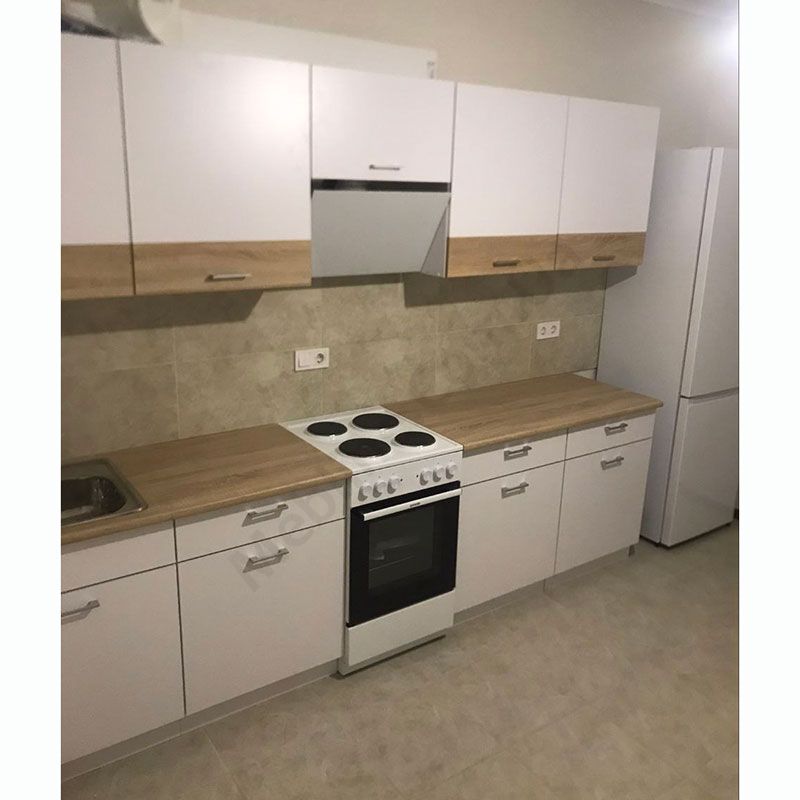 Готова кухня довжиною 300 см зі стільницею, верхніми та нижніми модулями.