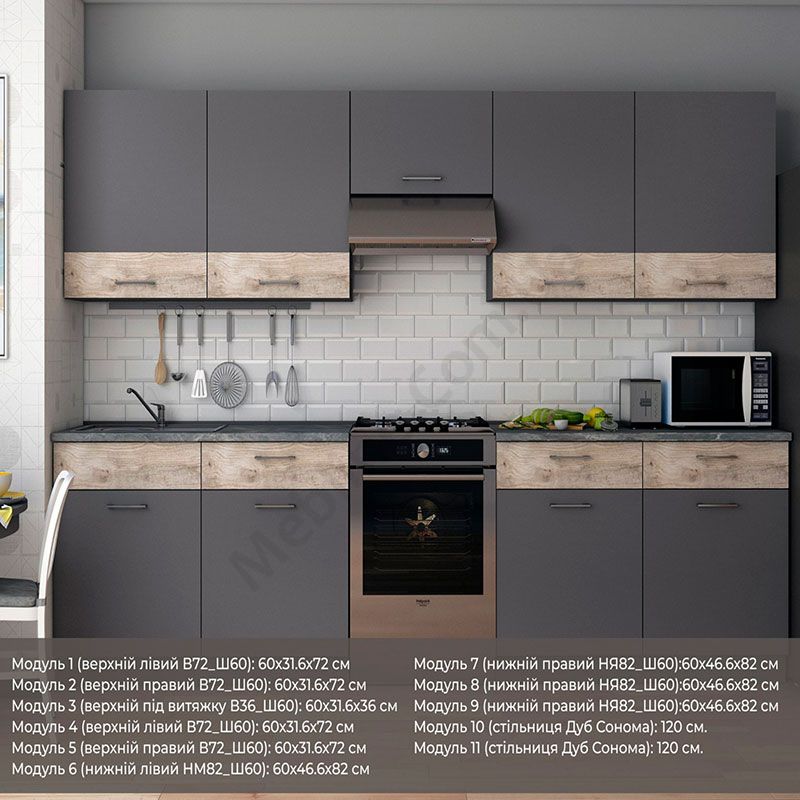 У магазині Ви можете купити Кухня Лея 3 м Графіт + Клондайк за доступною ціною та доставкою по всій Україні. Обирайте Кухонний комплект від фабрики Doros в інтернет магазині меблів.