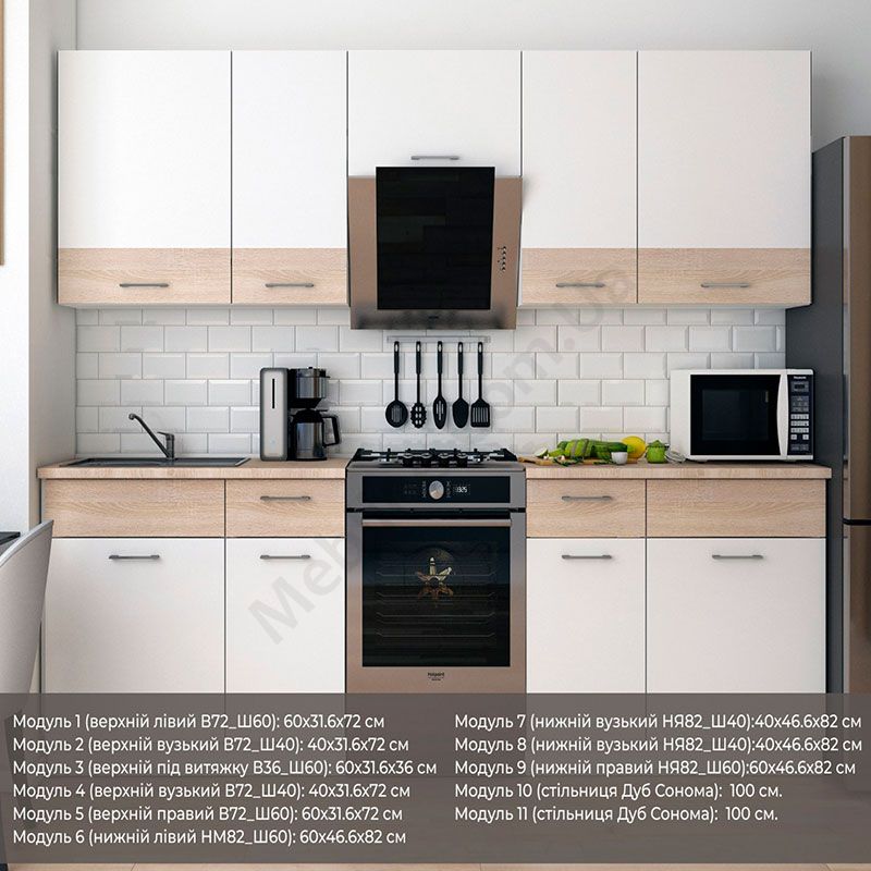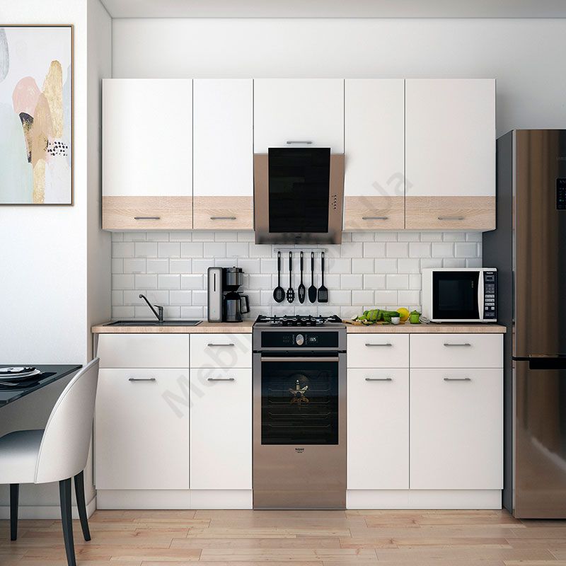 У магазині Ви можете купити Кухня Лея 2.6 м Білий + Дуб Сонома за доступною ціною та доставкою по всій Україні. Обирайте Кухонний комплект від фабрики Doros в інтернет магазині меблів.