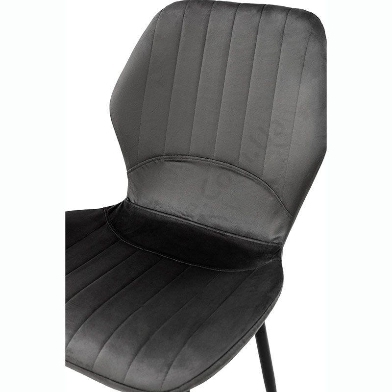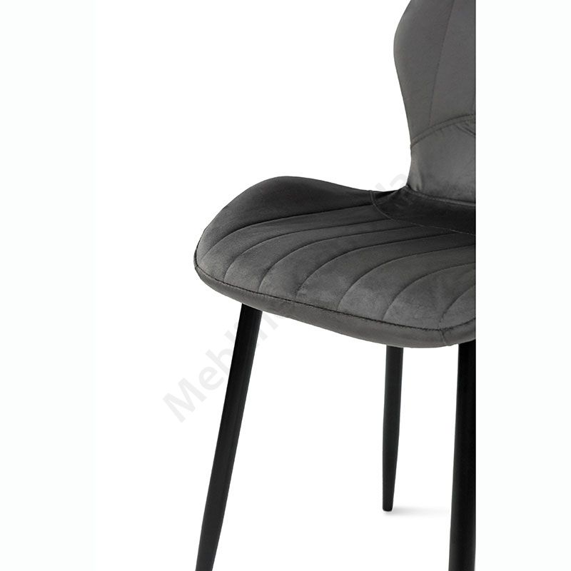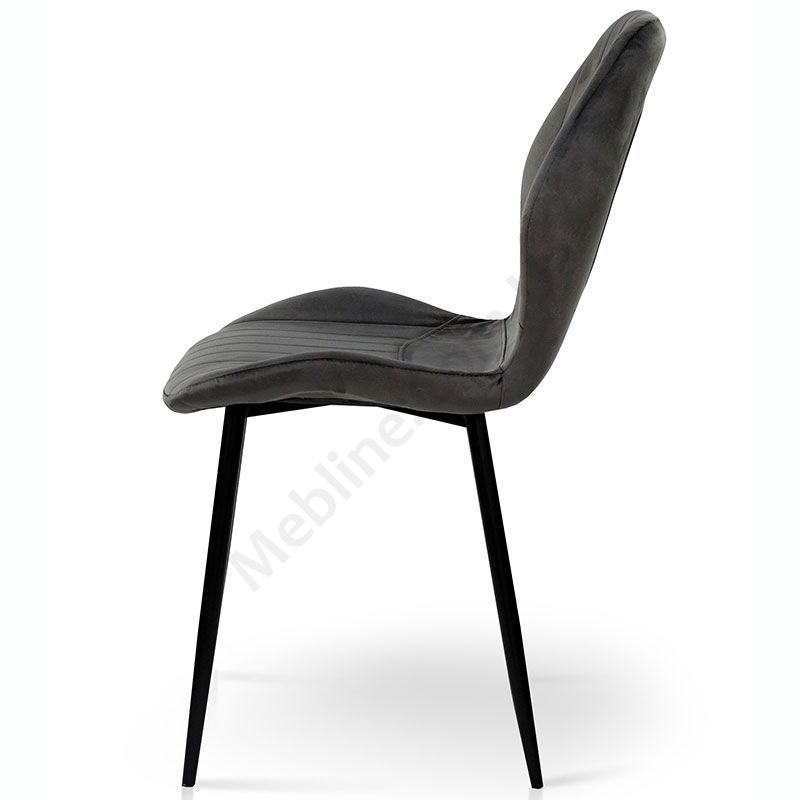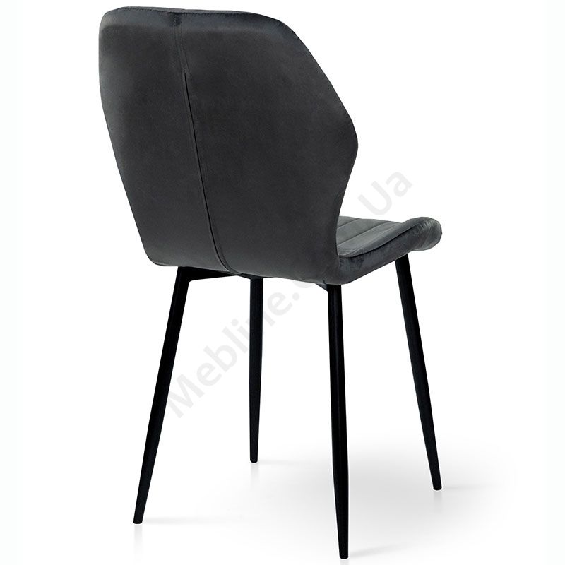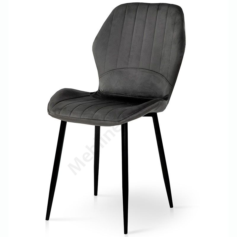 М’який стілець без підлокітників на металевих ніжках з оббивкою із велюру.