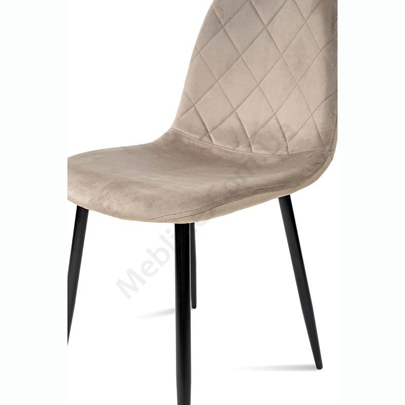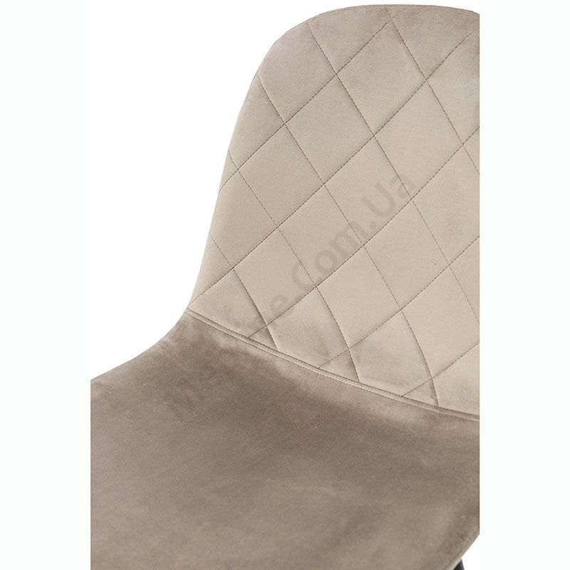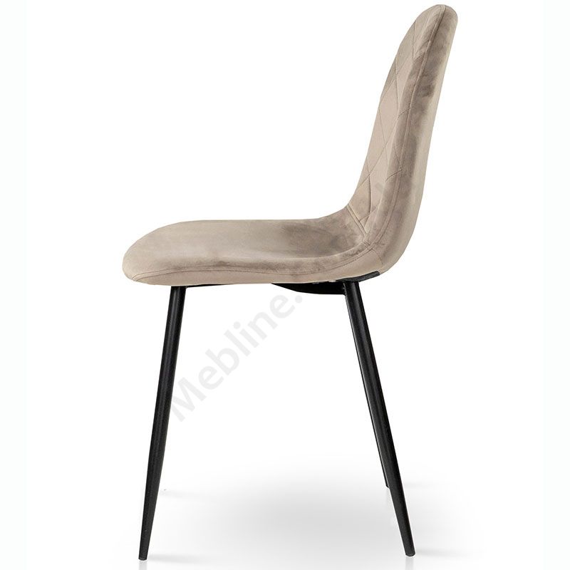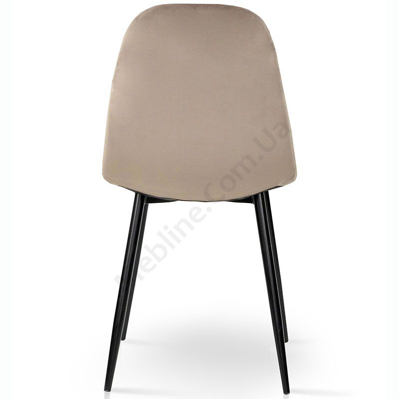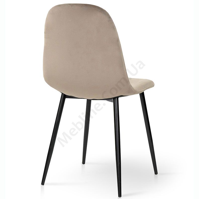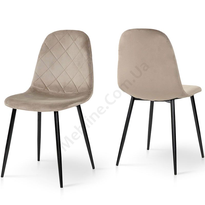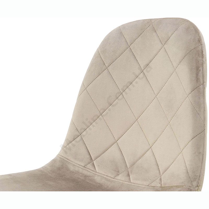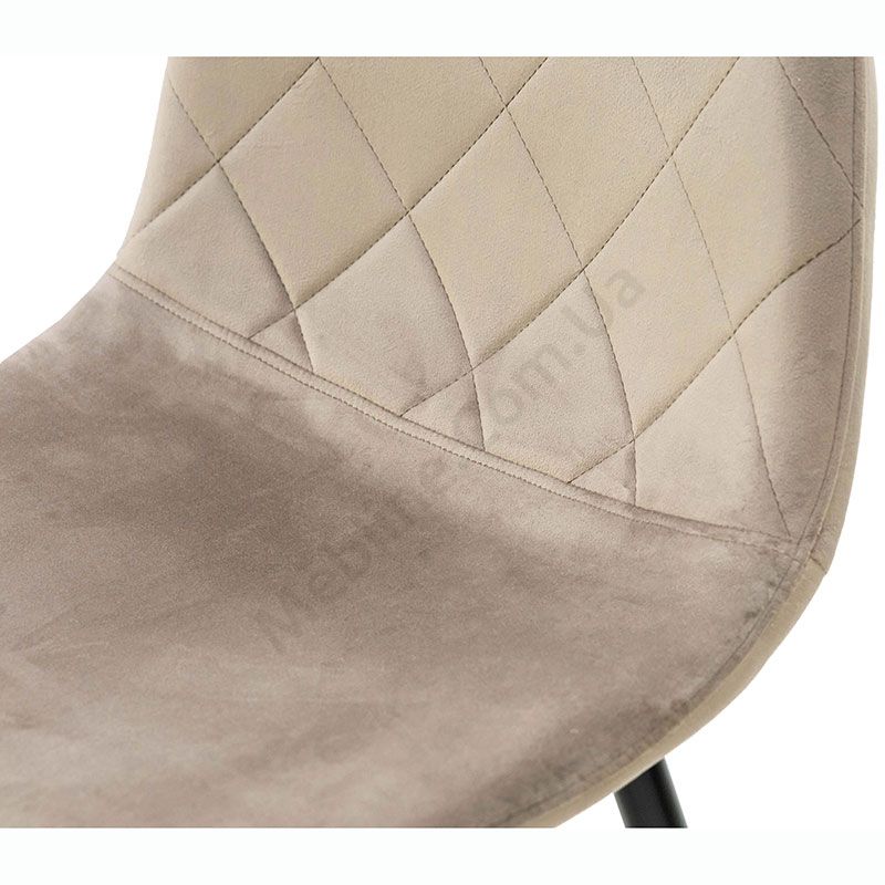 М’який стілець без підлокітників на металевих ніжках із тканинною оббивкою бежевого кольору.