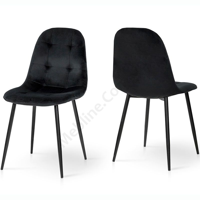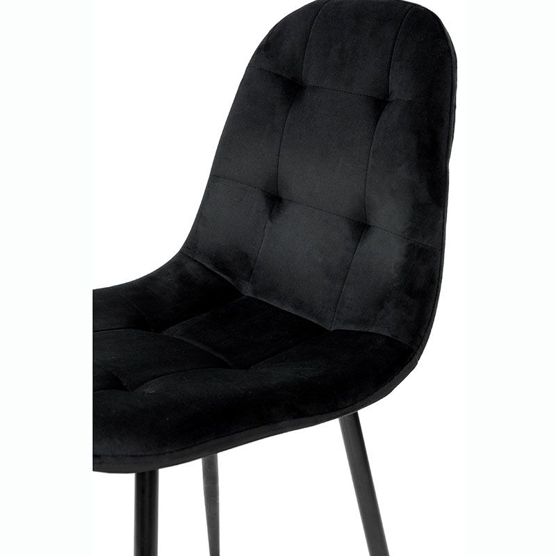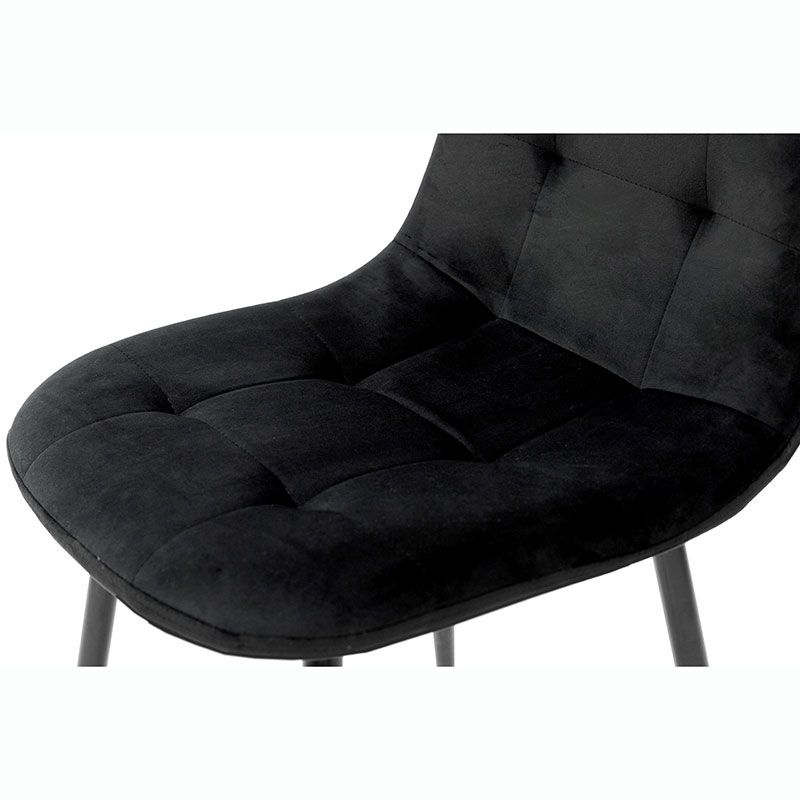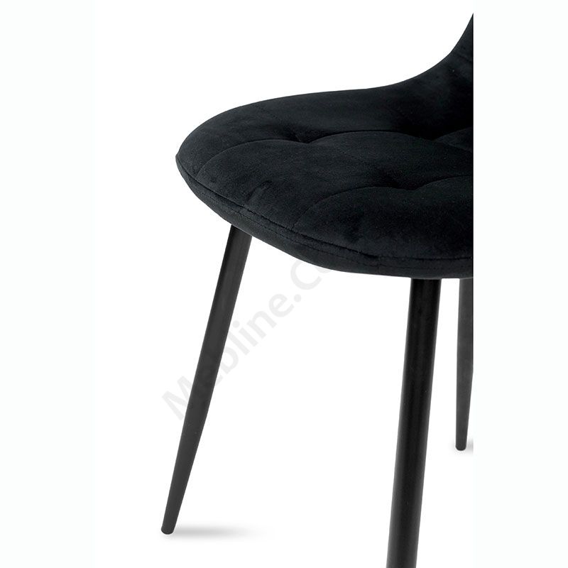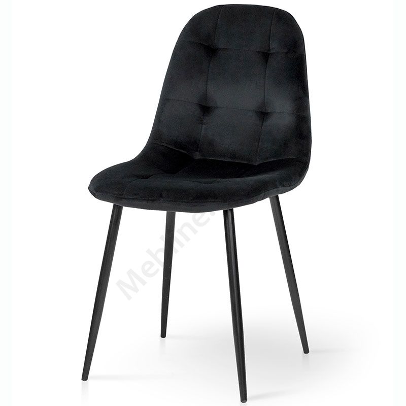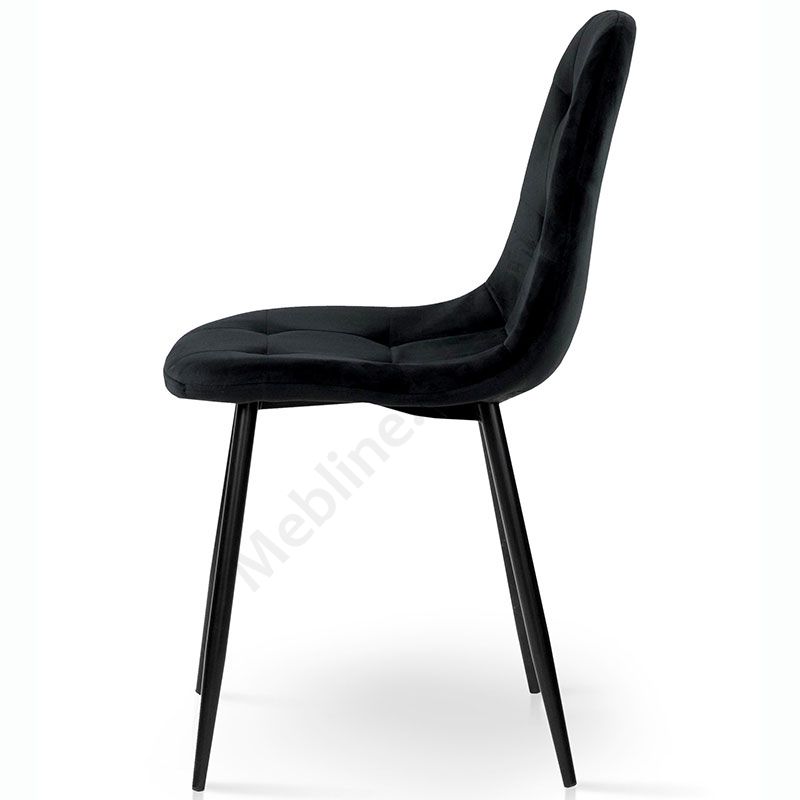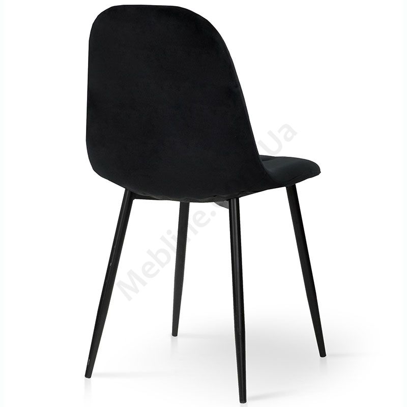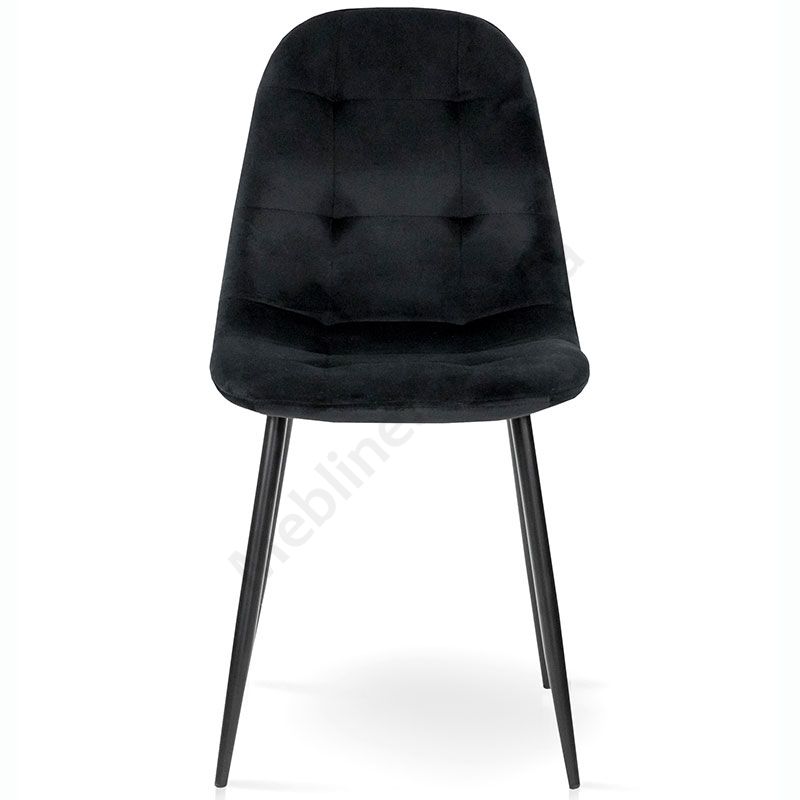 М’який стілець без підлокітників на металевих ніжках з оббивкою із велюру чорного кольору.