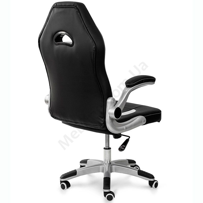 Комп’ютерне геймерське крісло з м’якими відкидними підлокітниками.